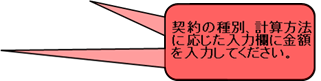 契約種別、計算方法に応じた欄に金額を記入してください。 |