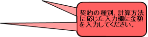 契約種別、計算方法に応じた欄に金額を記入してください。 |