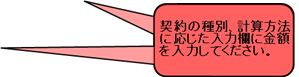 契約種別、計算方法に応じた欄に金額を記入してください。 |