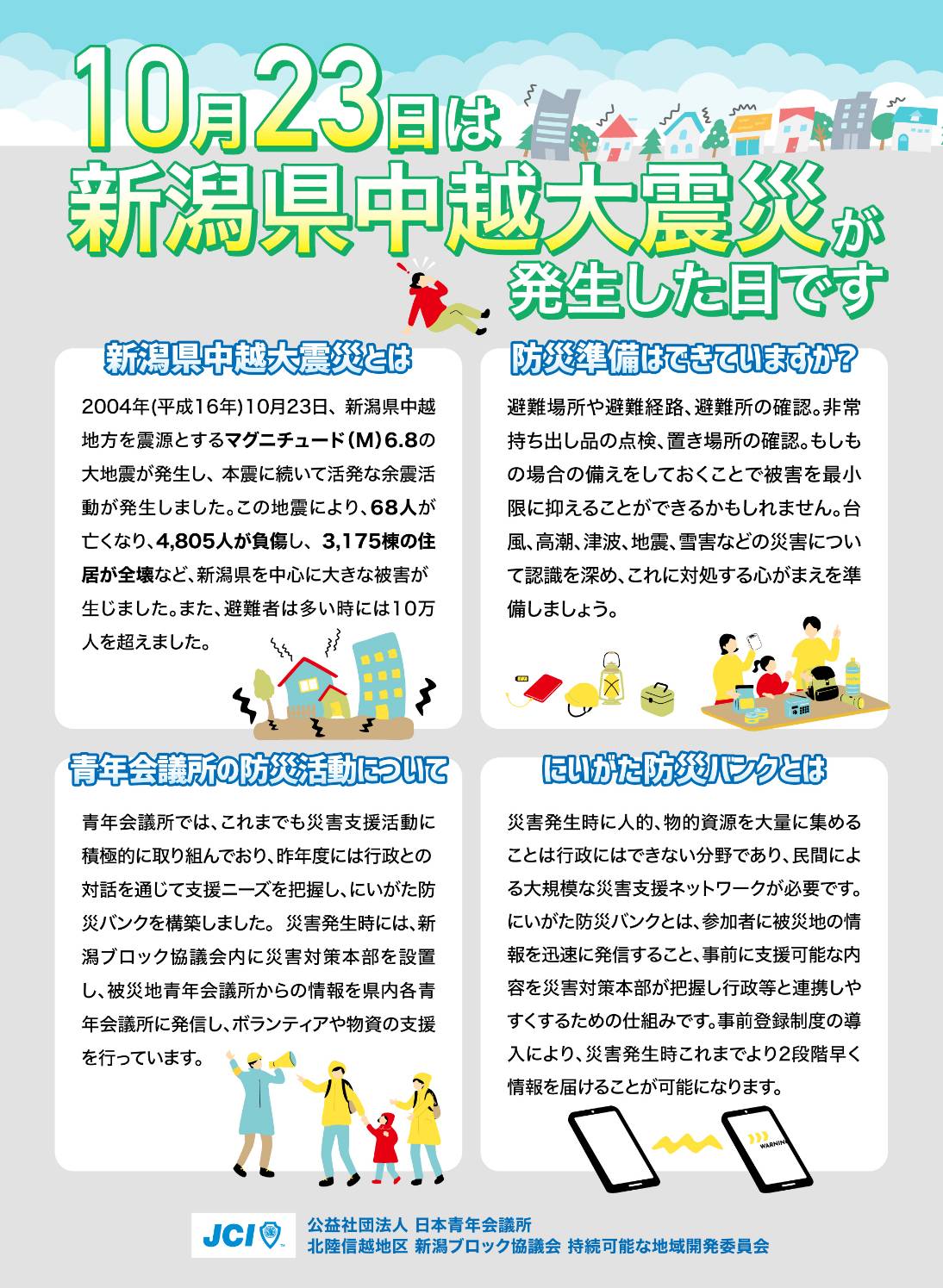 案内文に災害発生時の青年会議所の動き、防災バンクの説明を追加しました。 |